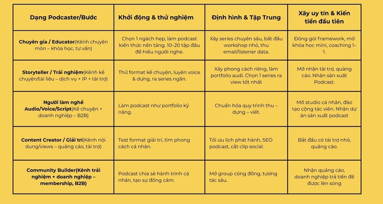 - Mô hình phát triển 3 bước cho các bạn Podcaster